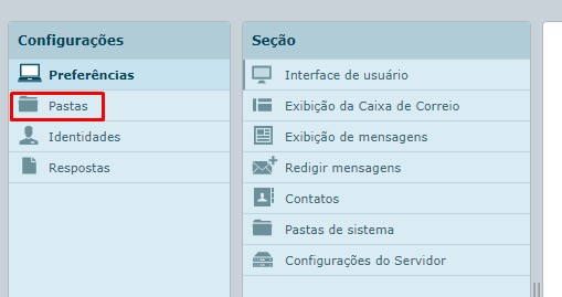 Na seção Configurações, clique na opção Pastas, localizada no menu à esquerda